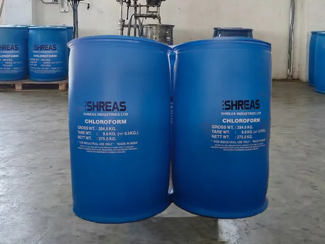 Chloroform (chemical formula CHCl₃) is a colorless, dense, and volatile organic compound with a characteristic sweet odor, widely used in industrial and laboratory applications. It belongs to the group of trihalomethanes and is produced commercially by the chlorination of methane or by the reaction of chlorine with methyl compounds. Chloroform is only slightly soluble in water but mixes readily with most organic solvents, making it an effective solvent for fats, oils, resins, alkaloids, rubber, and various organic substances. Historically, it was used as an anesthetic in medical procedures during the 19th and early 20th centuries; however, its use in medicine was discontinued due to its toxicity and potential to cause liver, kidney, and cardiac damage.